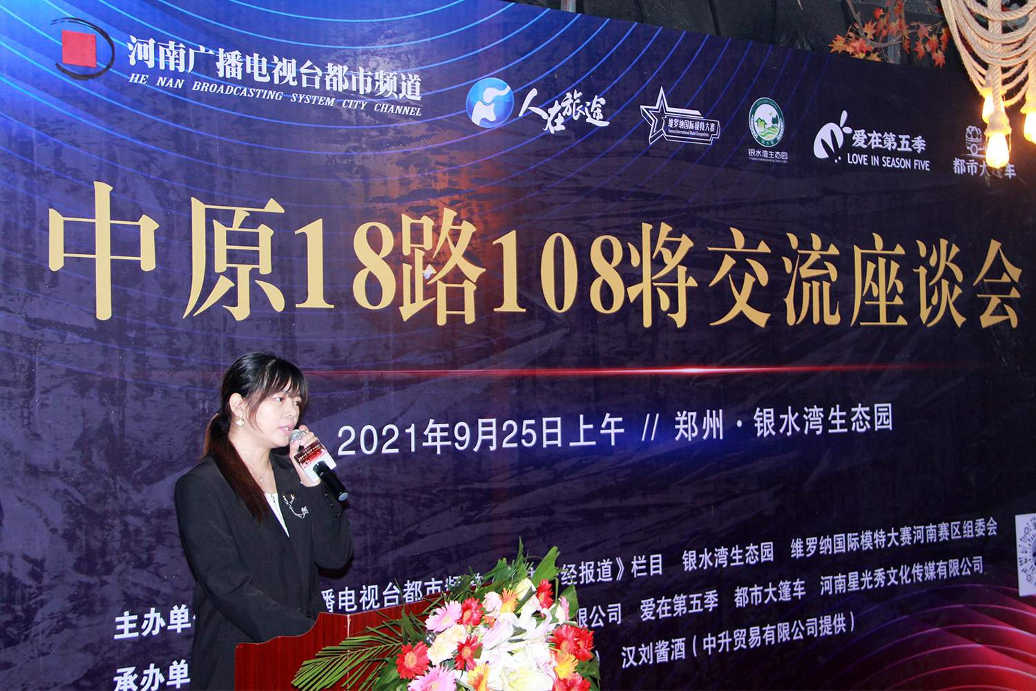 中原18路108將交流座談會(huì )于9月25日上午在河南·鄭州銀水灣生態(tài)園成功舉辦,本活動(dòng)由河南廣播電視臺都市頻道《都市產(chǎn)經(jīng)報道·人在旅途》欄目、銀水灣生園、維羅納國際模特大賽河南賽區組委會(huì )主辦,聯(lián)合人在旅途網(wǎng)愛(ài)在第五季都市大篷車(chē)河南全媒體文化傳媒、河南星光秀文化傳媒聯(lián)合承辦。