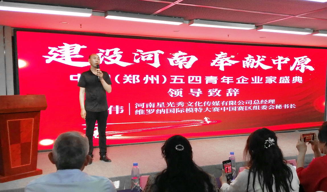 隨著(zhù)高昂的音樂(lè )旋律,河南星光秀文化傳媒有限公司總經(jīng)理徐偉先生作為承辦方的代表他與會(huì )致辭,首先通過(guò)屏幕視頻展現了星光秀文化傳媒這些年發(fā)展歷程和承接的多系列的成功案例,以及講述了公司為事業(yè)單位、商會(huì )協(xié)會(huì )、企業(yè)、個(gè)人所幫扶的事跡,今后為更多的青年提供更多支持。