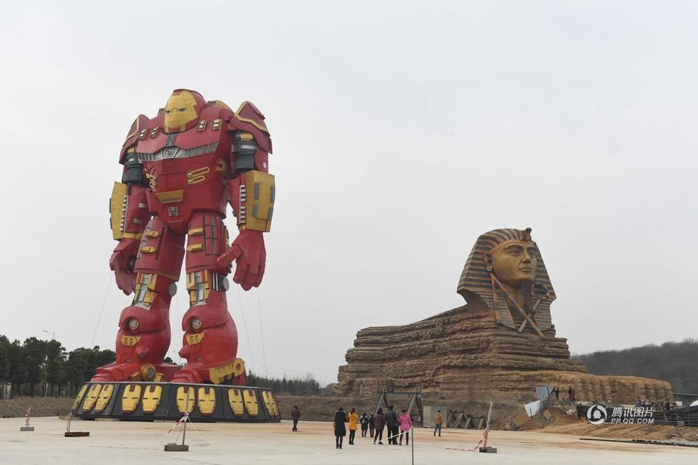 2月21日,安徽省滁州市南譙區的“山寨獅身人面像”和巨型“鋼鐵俠”吸引眾多市民和游客慕名前來(lái)圍觀(guān)拍照