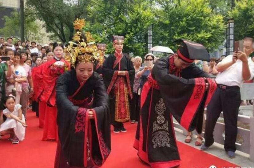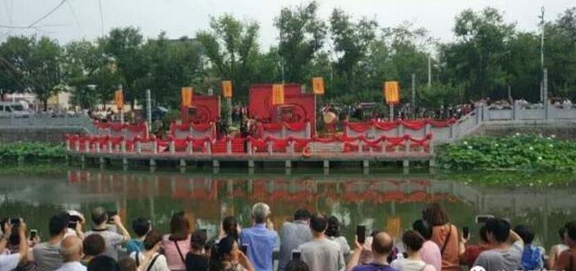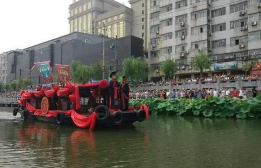 6月25日上午,一場(chǎng)別致的漢服水上婚禮在護城河上演。