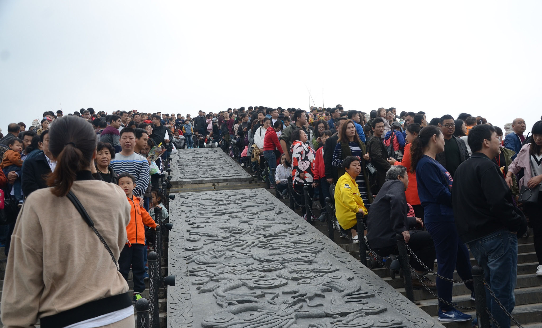 10月5日,在河南開(kāi)封清明上河園,眾多游人站在橋上看演出。當日清明上河園景區人流如織,景區表演處人山人海,很多游客無(wú)奈感嘆“到哪里,看的全是人!”