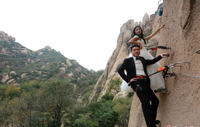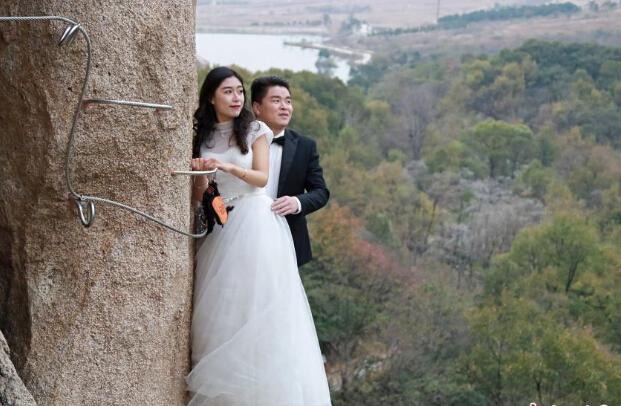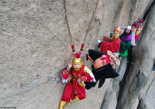 11月11日,河南省駐馬店市,一對情侶在嵖岈山風(fēng)景區懸崖峭壁上拍婚紗照,吸引了唐僧孫悟空等師徒圍觀(guān)祝福。據悉,嵖岈山是中央電視臺《西游記》外景拍攝基地之一,西游文化成為景區靚麗名片。
