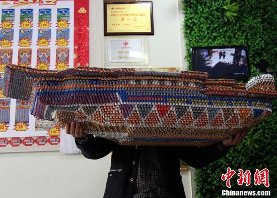 該“航母”長(cháng)1.5米,寬60厘米、高70厘米,全部完成共需要約1.2萬(wàn)張彩票。