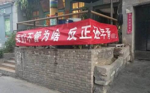 11月24日,在河南新鄉市東大街上,一家飯店的門(mén)頭上掛出一個(gè)條幅,內容是“我們不知道為啥,突然想掛個(gè)條幅”。隨后其他商家也紛紛跟進(jìn),開(kāi)始了一場(chǎng)幽默的“條幅大戰”。大家相互配合,圍繞第一個(gè)條幅的內容向外延伸,腦洞大開(kāi)。條幅的內容語(yǔ)氣都比較幽默,讓人看了忍不住就想笑。商家的神創(chuàng )意成功引起了路過(guò)市民的注意。還有市民專(zhuān)門(mén)跑到這條街上來(lái)看熱鬧。