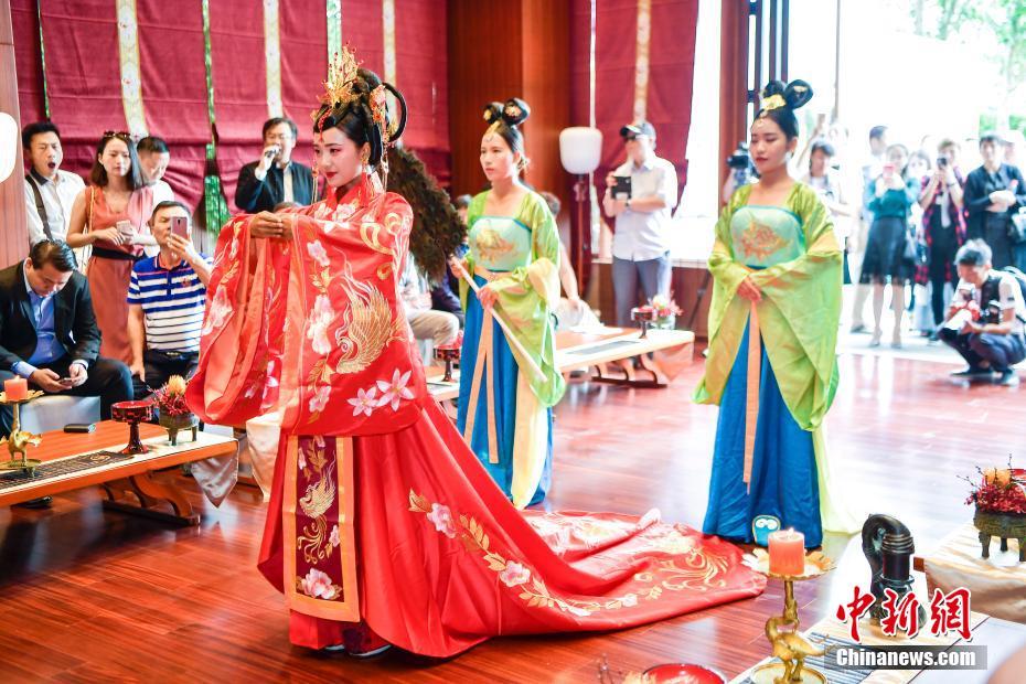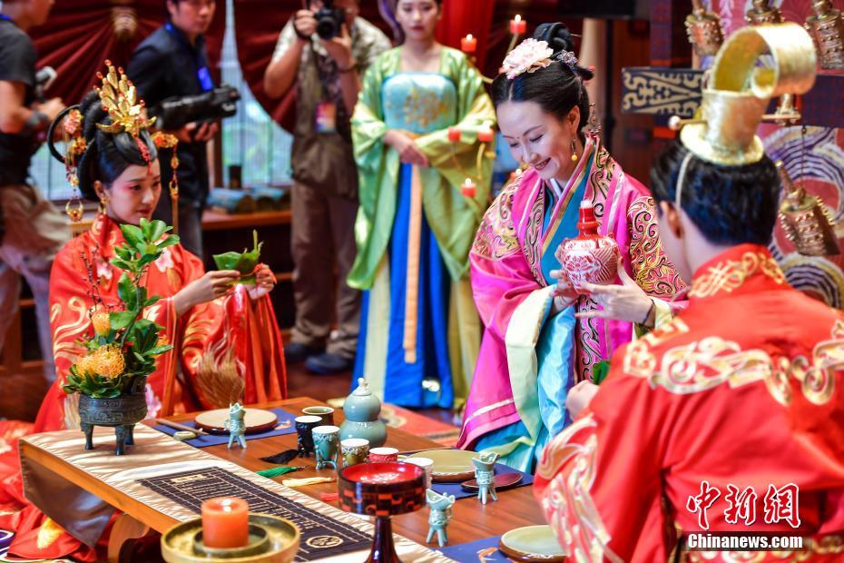 12月2日,2017三亞目的地婚禮博覽會(huì )在海南三亞舉行,一場(chǎng)富有民俗特色的盛唐婚禮秀《伴》讓所有與會(huì )者沉浸在美輪美奐的中國傳統婚禮文化中,活動(dòng)通過(guò)場(chǎng)景還原,再現盛唐時(shí)期的隆重婚慶場(chǎng)面,新人重新演繹新娘出閣、卻扇禮等唐朝婚禮中的重要流程,讓現場(chǎng)觀(guān)眾頓時(shí)穿越千年,夢(mèng)回唐朝。