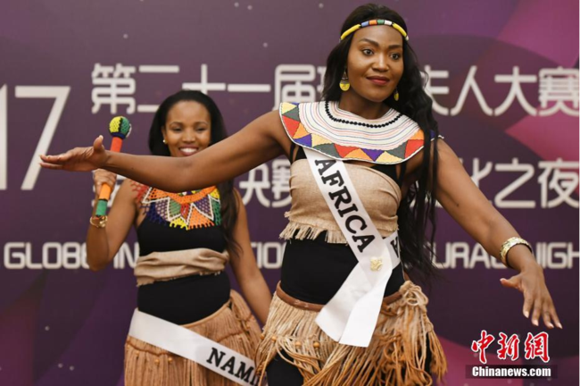 12月7日晚,來(lái)自70多個(gè)國家和地區的夫人們身著(zhù)各自國家盛裝,參加在深圳舉行的第21屆環(huán)球夫人大賽全球總決賽民族文化之夜盛典。非洲、地中海、愛(ài)沙尼亞等地參賽佳麗表演了獨特文化才藝,多國佳麗激情備戰12月12日的全球總決賽。