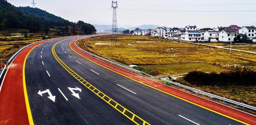 1月1日,航拍即將建成通車(chē)的江西省上饒市鉛山縣河永快速通道(河口至永平),該快速通道是鉛山首條彩色公路,宛如彩帶穿行于秀美鄉村之間。