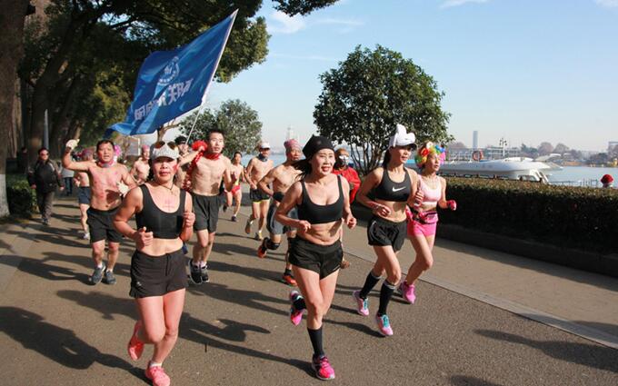 2018年1月13日,江蘇省南京市,清晨八點(diǎn)多,南京氣溫零下3度,近百名健身愛(ài)好者脫去厚重的外套,身著(zhù)泳衣、短褲等環(huán)玄武湖進(jìn)行“光豬跑”,通過(guò)獨特的方式迎接即將到來(lái)的農歷新年,也是向人們倡導親近自然、積極健身的健康生活方式。