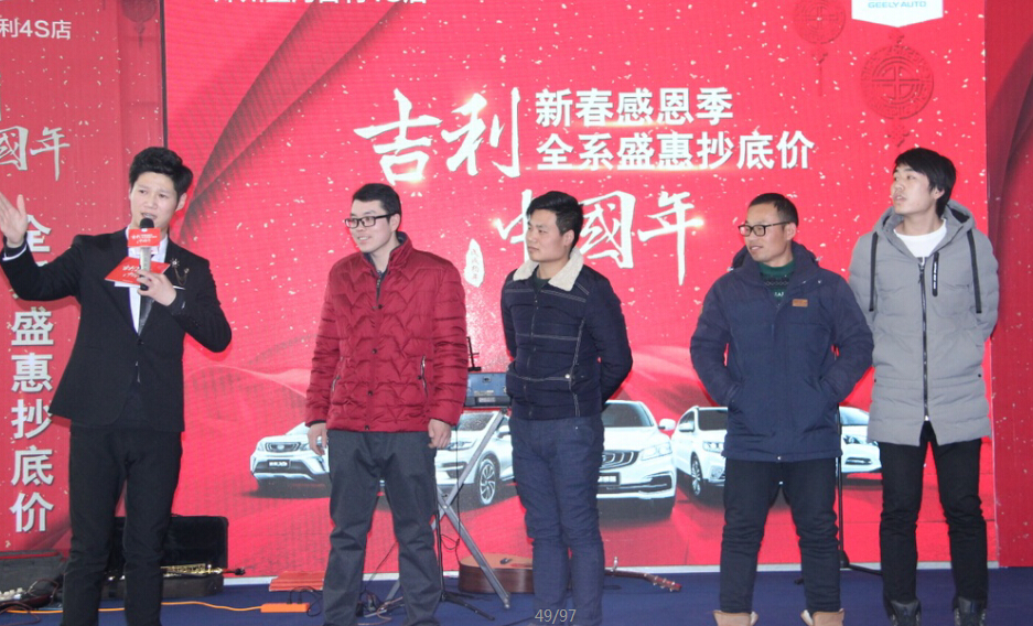 吉利中國年——新春感恩季 全系盛典抄底價(jià),有河南星光秀文化傳媒有限公司承辦,2018年1月13日下午兩點(diǎn)到四點(diǎn)三十分在鄭州鑫河吉利4S店圓滿(mǎn)落幕。