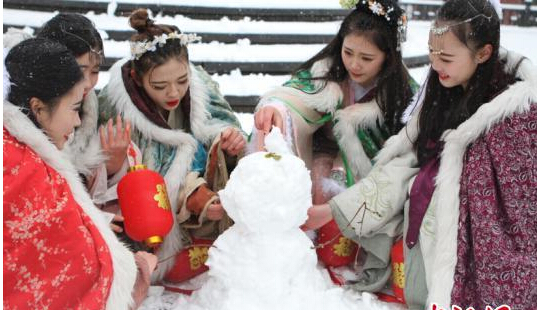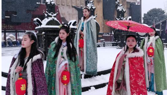 1月25日,在漫天飄飛的寒雪之中,常州春秋淹城遺址上,一群古裝美女踏雪而來(lái),為白雪掩映之下的常州淹城帶來(lái)點(diǎn)點(diǎn)亮色。