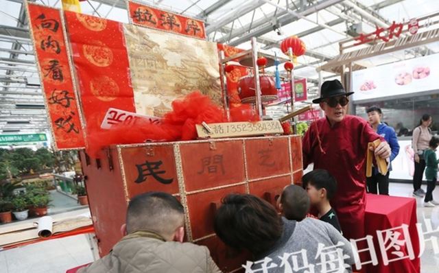 拉洋片(西洋景)作為一種傳統民間藝術(shù)基本絕跡,僅有少數愛(ài)好者仍在從事此種藝術(shù)形式。今年56歲的張功成,鄭州人。祖傳拉洋片手藝,自己也已經(jīng)干了十幾年。之所以干起這一行,張功成說(shuō),我原是口技演員,為了使拉洋片這門(mén)古老的手藝得到保留和傳承,就放棄了當演員重新拾起了祖傳的這門(mén)手藝。拉洋片起初的形式是以布做墻圍成直徑約兩丈的場(chǎng)地,有畫(huà)掛于人前,畫(huà)面高約二點(diǎn)五米,寬約三點(diǎn)三米,上繪各地山水兼人物,一張畫(huà)成一卷。觀(guān)眾看完一張后,演員用繩索放下另一張。同時(shí),用木棍指點(diǎn)畫(huà)面并做解釋?zhuān)碛腥舜蛑?zhù)鑼鼓招攬觀(guān)眾。后經(jīng)時(shí)代的革新演變?yōu)橛靡荒局葡,分上現兩層,每層高約零點(diǎn)八米、長(cháng)約一米,下層的正前面有四個(gè)或六個(gè)圓形孔,孔中嵌放大鏡。