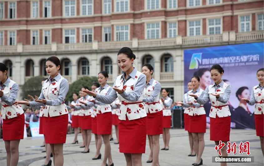3月29日,一場(chǎng)專(zhuān)業(yè)職業(yè)技能的比賽在四川西南航空職業(yè)學(xué)院舉行。在其中的“客艙乘務(wù)員職業(yè)姿態(tài)”展示環(huán)節,已被航空公司錄取的準空姐們身穿旗袍,帶來(lái)一場(chǎng)超養眼的視覺(jué)盛宴。