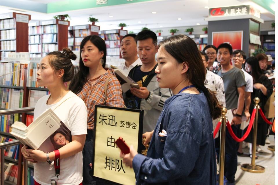 6月9日,新華書(shū)店鄭州購書(shū)中心,央視住處人朱迅新書(shū)《阿迅》新書(shū)簽售會(huì )現場(chǎng)火爆。