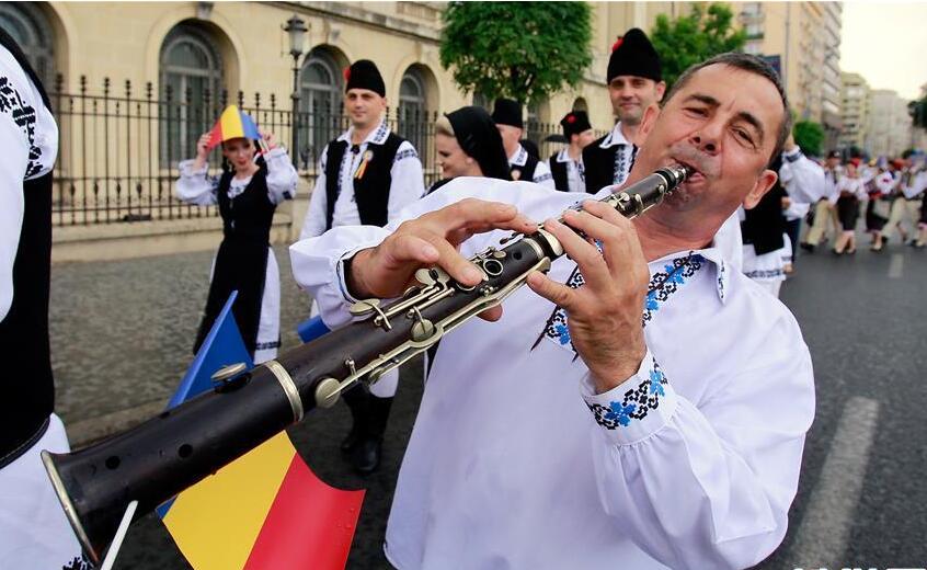6月21日,中國藝術(shù)家在參加羅馬尼亞國際民間音樂(lè )和傳統藝術(shù)節開(kāi)幕式。 6月21日,羅馬尼亞國際民間音樂(lè )和傳統藝術(shù)節在羅馬尼亞首都布加勒斯特開(kāi)幕,吸引了羅馬尼亞、塞爾維亞、黑山、馬其頓和中國等國家和地區的藝術(shù)家參加。