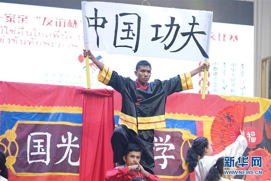 9月1日,在泰國宋卡府合艾市,泰國學(xué)生表演中國武術(shù)。 2019年中泰一家親“友誼杯”泰國南部大中小學(xué)生中文比賽決賽9月1日下午在宋卡府合艾市舉行。經(jīng)過(guò)角逐,有4名學(xué)生獲得前往中國交流學(xué)習的機會(huì )。