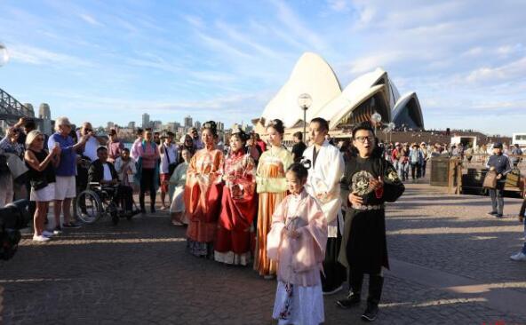在海外唱起《我和我的祖國》我們都已經(jīng)熱淚盈眶 “一條大河波浪寬,風(fēng)吹稻花香兩岸……”視頻一開(kāi)頭,一個(gè)清亮的童聲唱起《我的祖國》,7歲的茜茜穿著(zhù)一身粉色漢服,裊裊而出,隨后,鏡頭一掃,轉到一位撥動(dòng)古箏琴弦的女子面前,古箏、二胡、琵琶,音樂(lè )隨之而出,“我和我的祖國,一刻也不能分割,無(wú)論我走到哪里,都流出一首贊歌……”伴隨著(zhù)歌聲,越來(lái)越多身穿漢服的年輕人走在一起,唱起這首歌。 “因為我們選擇的地方都是澳大利亞的地標,游客也很多,看到很多中國人都感動(dòng)得熱淚盈眶,和我們一起唱!弊客┲鄹嬖V紅星新聞?dòng)浾,當天,他們在澳大利亞的悉尼歌劇院外、海港大橋、唐人街進(jìn)行了《我和我的祖國》快閃的拍攝,從彩排到正式拍攝,一共錄制了10多遍,每一次演唱,都有很多人圍觀(guān),外國人雖然可能聽(tīng)不大懂歌曲的意思,但知道這是中國的服裝、樂(lè )器,覺(jué)得很漂亮,一直都在用手機拍攝、歡呼,演唱結束后還要求合影,堵得水泄不通。而在澳大利亞的游客、華人華僑則都跟著(zhù)一起演唱,“現場(chǎng)的感染力很強,唱了那么多遍,其實(shí)眼淚一直都在打轉轉!弊客┲壅f(shuō)。 這一次,參與《我和我的祖國》快閃活動(dòng)的30人,都是在澳大利亞的華人以及留學(xué)生,其中年齡最小的茜茜出生在澳大利亞,但都是華人的父母一直堅持讓茜茜學(xué)習中國傳統文化,從漢語(yǔ)到中國的樂(lè )器、舞蹈。