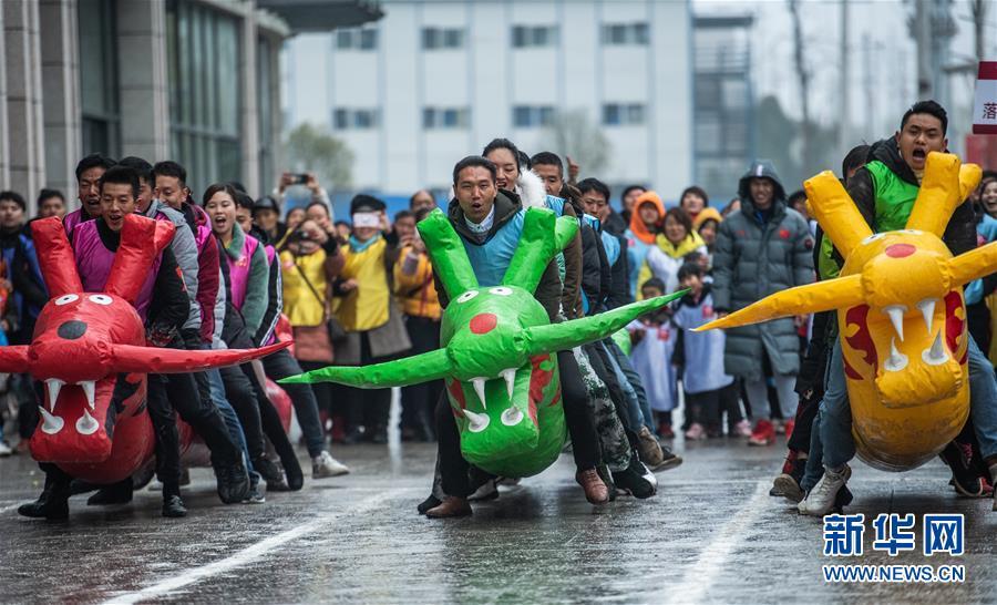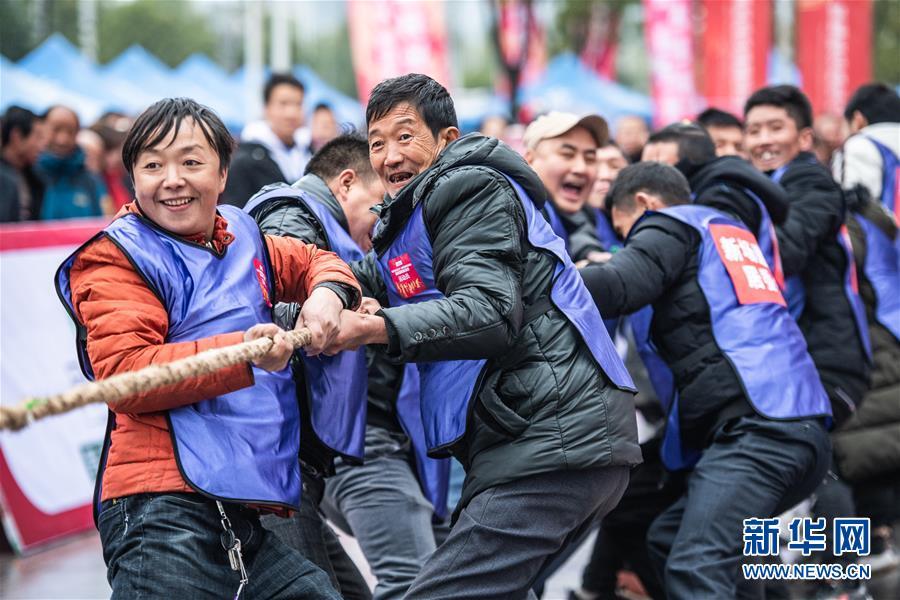 1月18日,來(lái)自當地易地扶貧安置社區的群眾參加旱地龍舟比賽。 當日,“紅紅火火過(guò)大年⋅多彩貴州迎新春”社區趣味運動(dòng)會(huì )在貴州六盤(pán)水市六枝特區舉辦。來(lái)自郎岱、龍場(chǎng)等12個(gè)易地扶貧安置社區的600余名群眾,在聚福新苑易地扶貧小區參加了旱地龍舟、勇挑重擔、投壺、拔河等趣味運動(dòng),開(kāi)心快樂(lè )迎接新年到來(lái)。