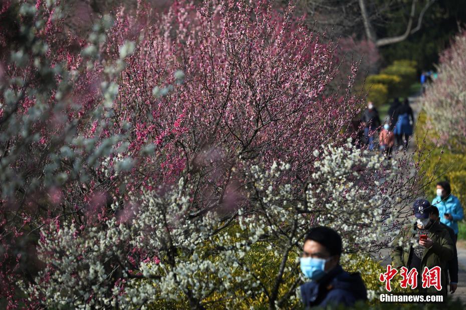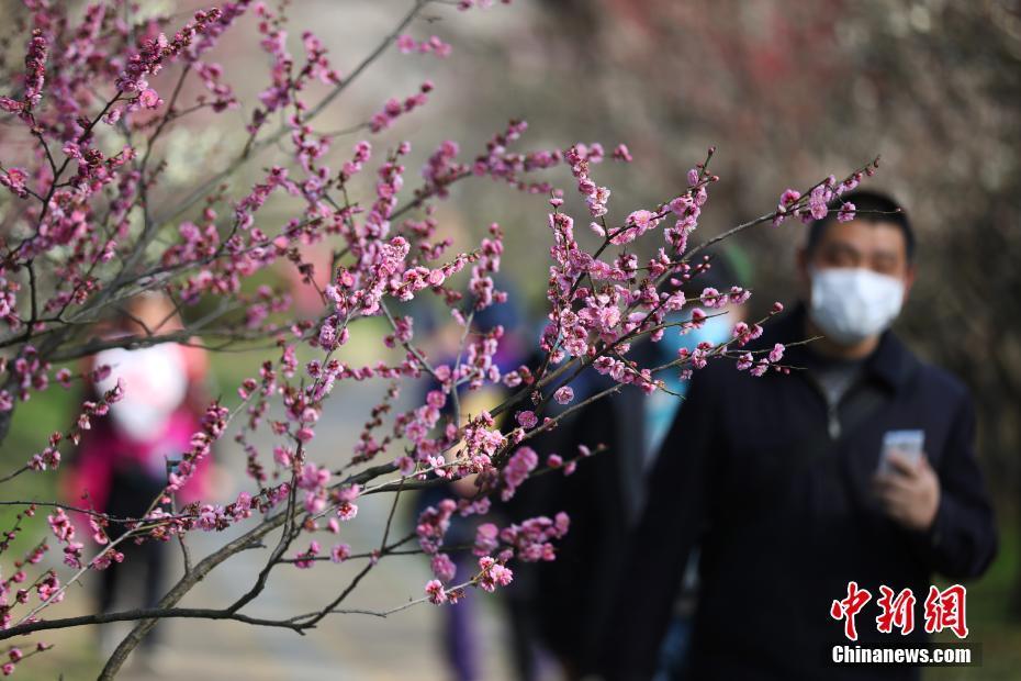 2月22日,游人在南京東郊梅花山賞梅拍照。近日,受新冠肺炎疫情影響而關(guān)閉的南京梅花山開(kāi)放,“淡妝宮粉”、“粉紅朱砂”、“江南宮粉”等梅花品種陸續盛開(kāi),吸引民眾前來(lái)徜徉花海沐浴春光。據悉,為確保安全,所有進(jìn)入景區的人員需要佩戴口罩,并進(jìn)行體溫測量。