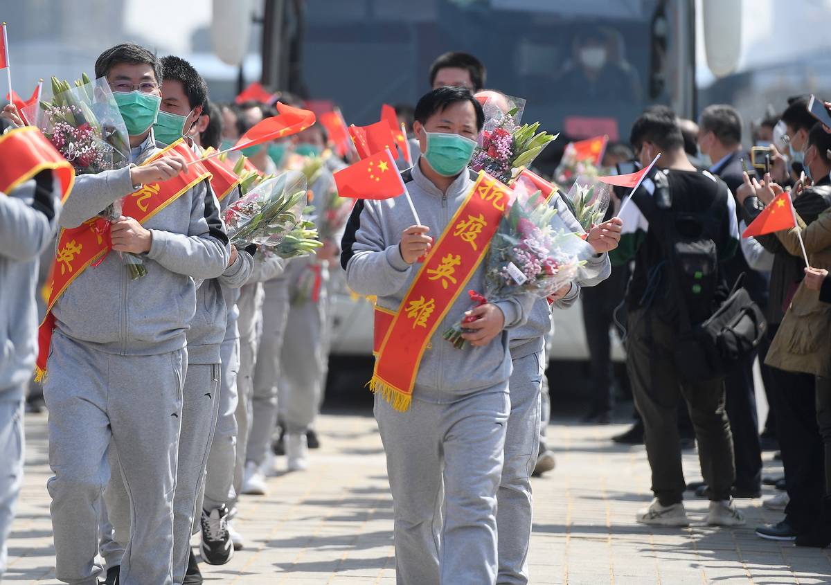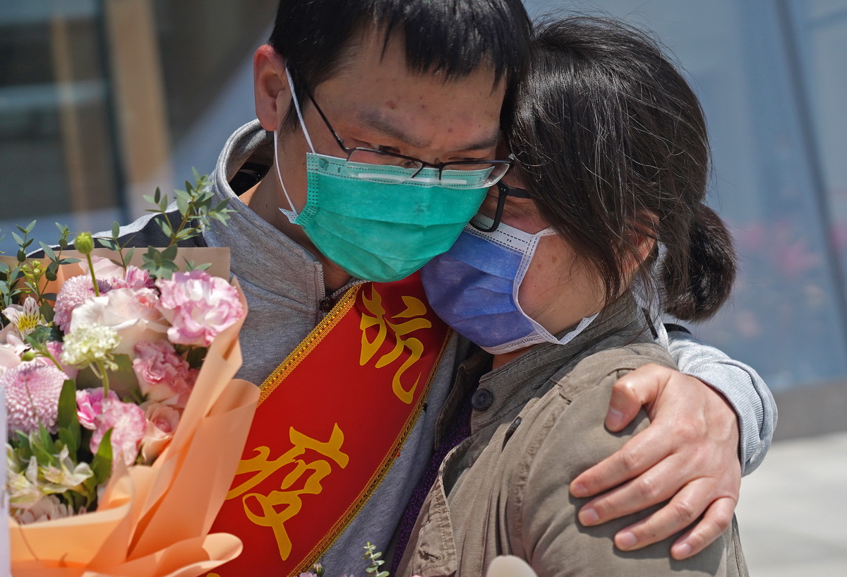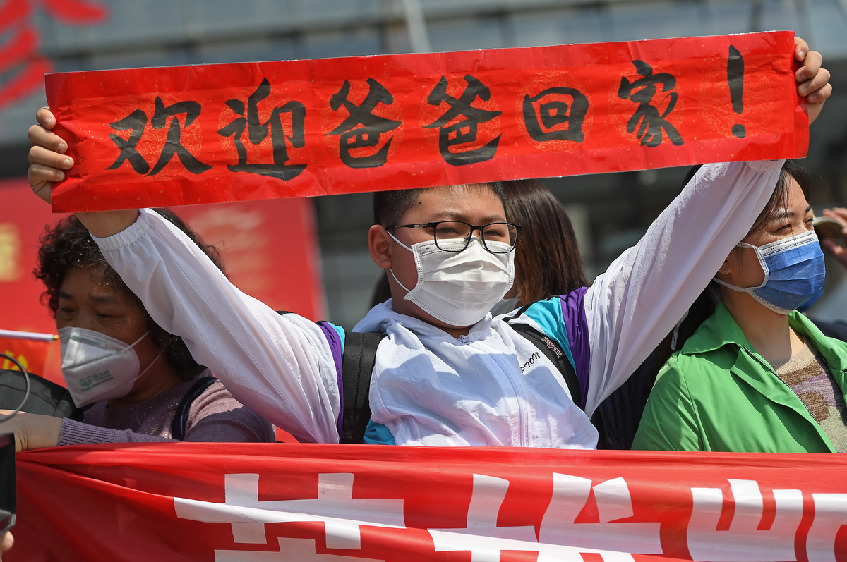 4月15日,南昌大學(xué)一附院援助武漢國家醫療隊141名隊員結束為期14天的醫學(xué)隔離休整,與家人團聚。