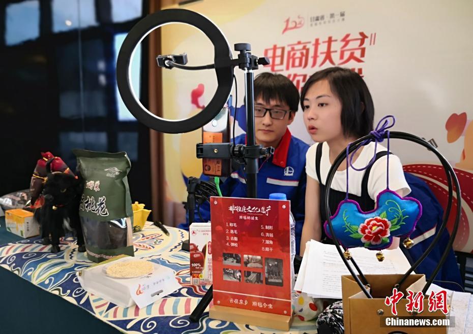 5月22日,由甘肅省商務(wù)廳主辦的“甘肅省第一屆直播電商帶貨大賽”在蘭州啟動(dòng),來(lái)自該省的多名主播把直播間搬入會(huì )場(chǎng),現場(chǎng)直播帶貨。