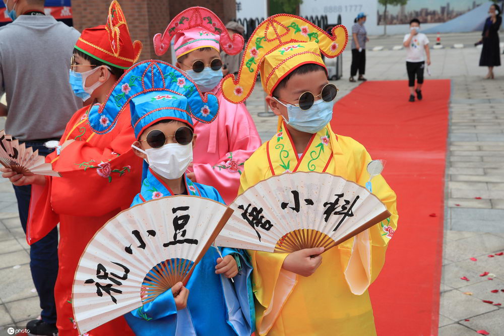 2020年6月1日,浙江寧波,同學(xué)們身著(zhù)奇裝異服走進(jìn)校園。當天,寧波奉化龍津實(shí)驗學(xué)校舉行“百變模仿秀”活動(dòng)。一早,同學(xué)們身著(zhù)自己喜歡的服飾、造型在鋪著(zhù)紅毯的校門(mén)口進(jìn)行走秀,有的是“皇帝”,有的是“蜘蛛俠”,有的是“哪吒……各種人物形象發(fā)揮出孩子們的創(chuàng )意,歡樂(lè )過(guò)六一。
