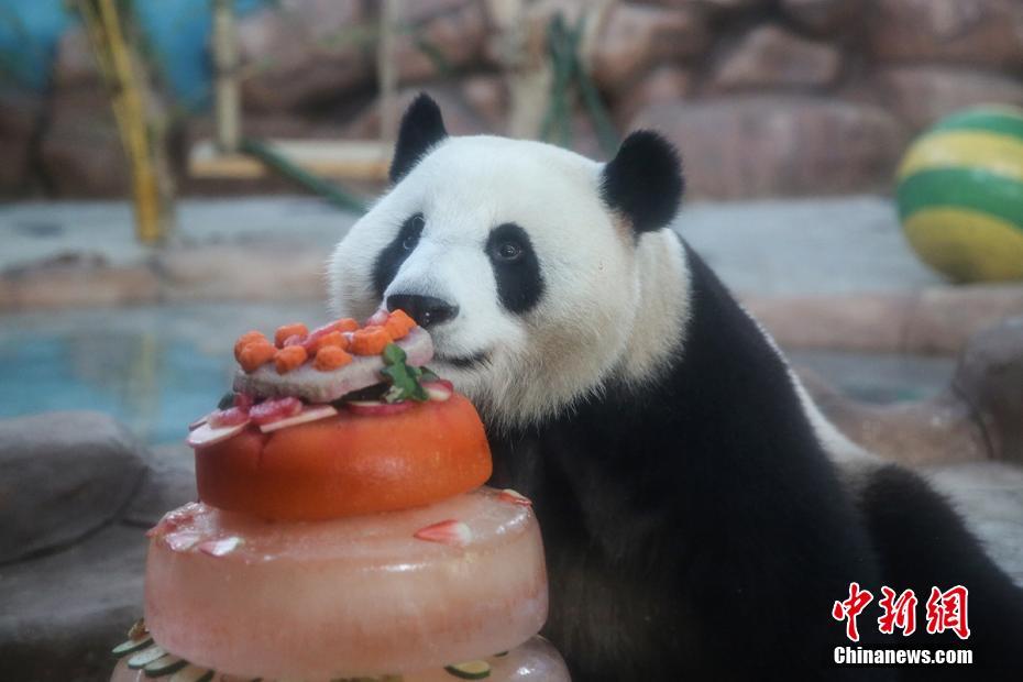 6月27日,廣西南寧市動(dòng)物園舉辦大熊貓生日會(huì ),為大熊貓“績(jì)美”“績(jì)蘭”慶祝4歲生日。生日會(huì )現場(chǎng),園方為熊貓“兄妹”準備了由西瓜,草莓等食物及冰塊組成的特制消暑“蛋糕”。