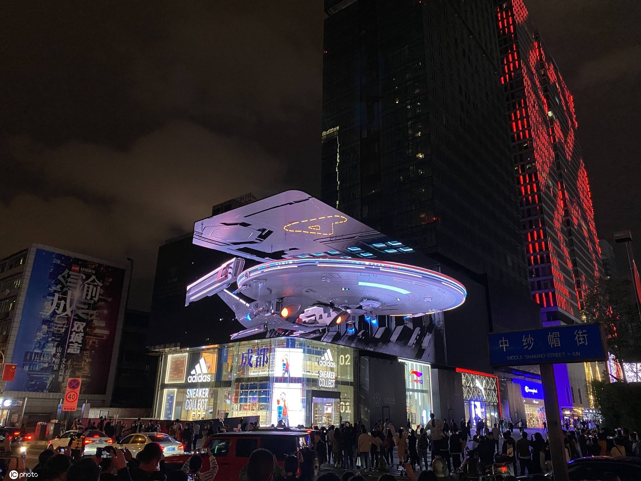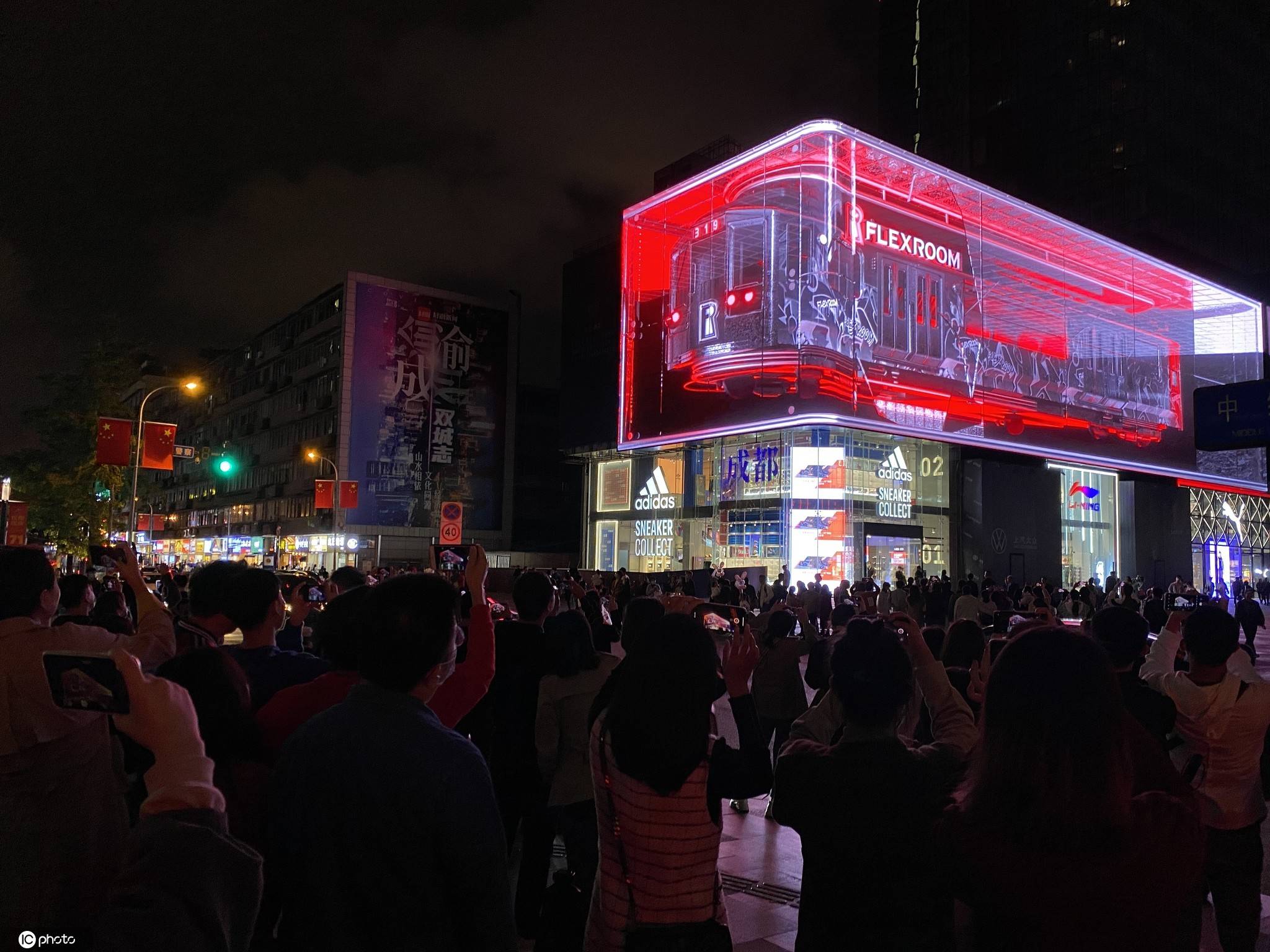 2020年10月5日,成都太古里裸眼3D大屏爆紅,游人排隊打卡。