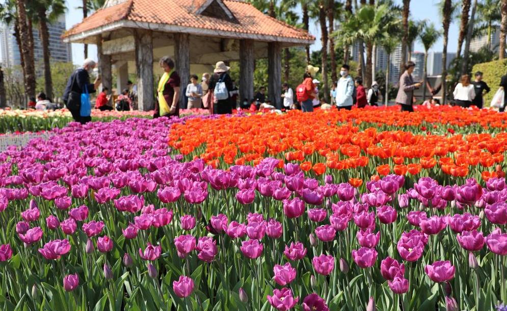 2月14日,福建廈門(mén)園博苑,近萬(wàn)株郁金香競相綻放,吸引眾多游客前來(lái)觀(guān)賞。